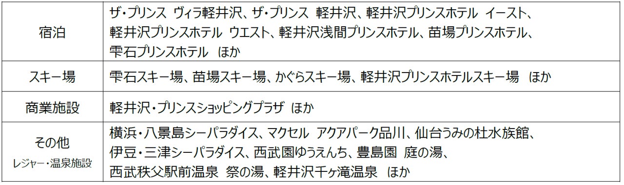 ※対象施設一覧はキャンペーンサイトよりご確認ください。※対象施設をご利用の際には、SEIBU PRINCE CLUBの会員証をご提示ください。