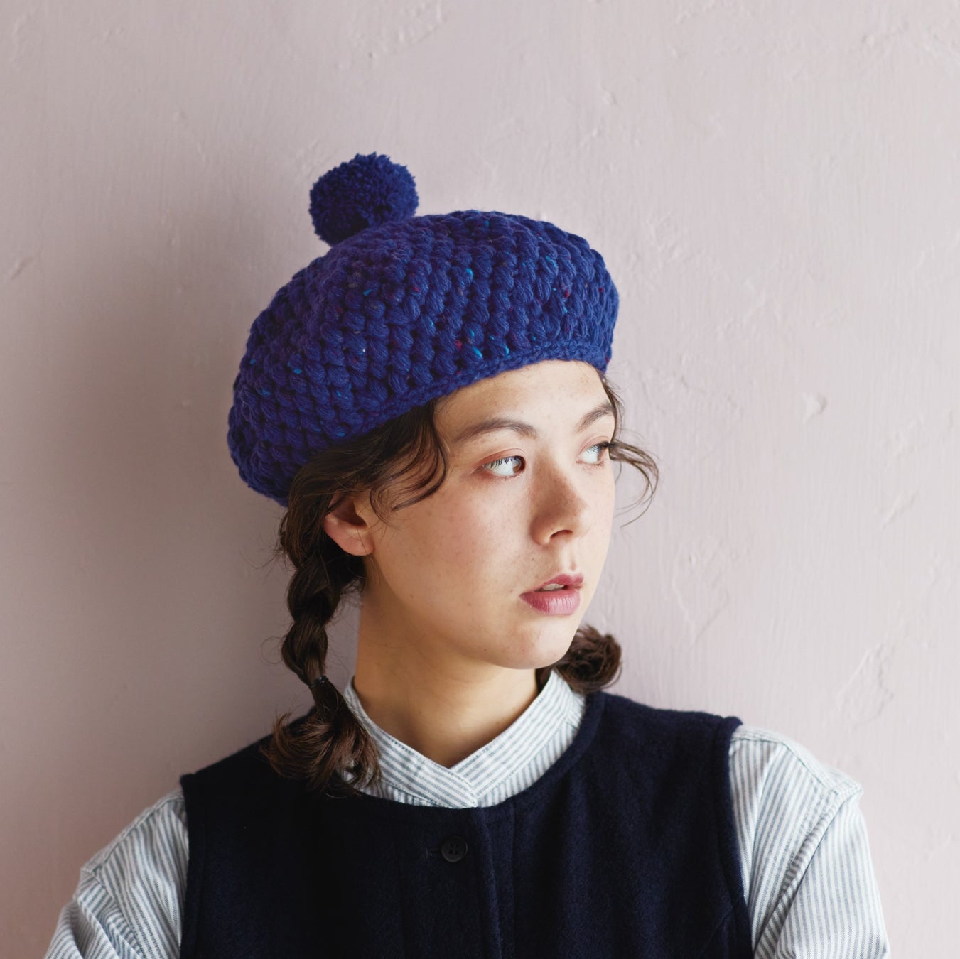 NHK出版デジタルマガジンで、バケットハット、ストライプ模様のネックウォーマー、玉編みのベレー帽、毛糸のくるくるブローチとその編み方記号図をご紹介しています。ぜひご覧ください。