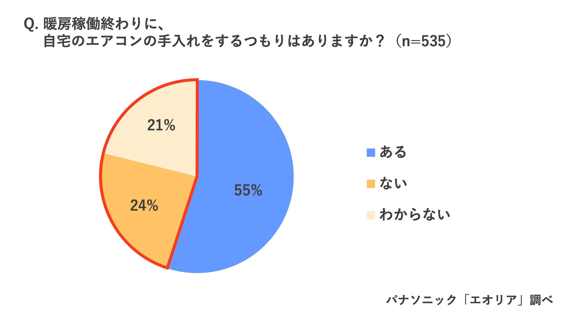 今冬の暖房稼働終わりの冬じまいの予定についても、24%が「手入れをするつもりがない」、21%が「わからない」と45%が冬じまいの予定がないことがわかっています。