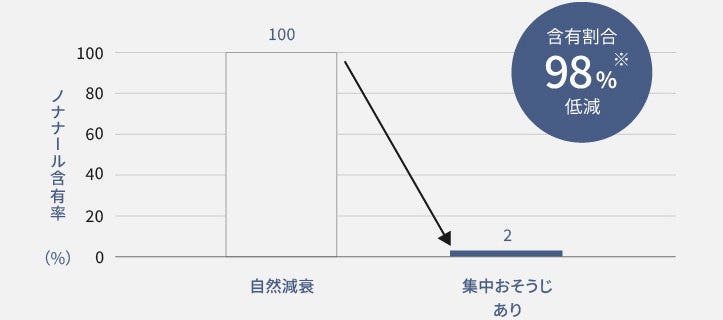 ※【試験機関】パナソニック ホールディングス(株)プロダクト解析センター【試験方法】市場を模擬した疑似ホコリにノナナールを付着させ、集中おそうじモードに曝したものと曝していないものとのエアコン吹き出し風の空気の定量分析を実施【試験結果】集中おそうじモード(137分)により98%低減することを確認。(Y23KI159)
