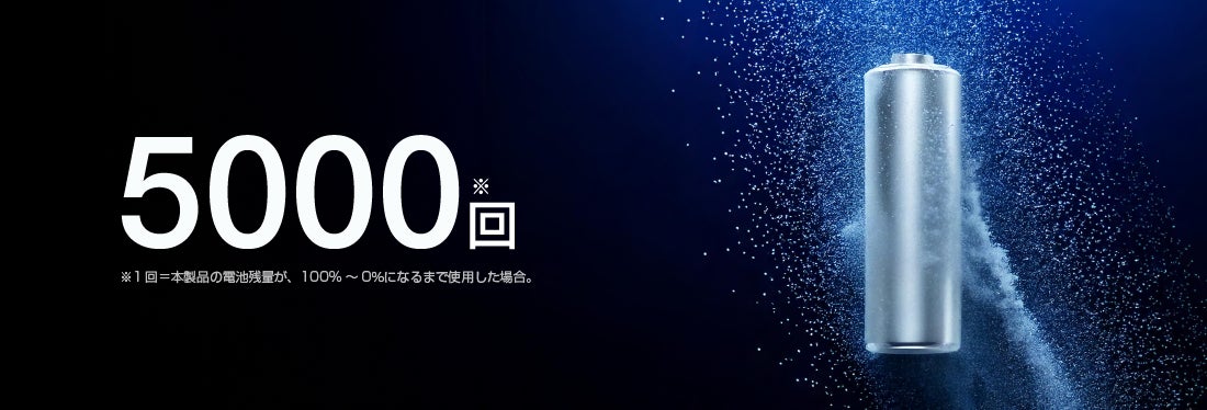 一般的なリチウムイオン電池を使用したモバイルバッテリーのサイクル寿命は約500回程度ですが、本製品に内蔵しているナトリウムイオン電池は約5,000回と約10倍の寿命があるため、長期間に渡って使用できます。1回の充電につき、本製品(バッテリー容量9,000mAh)で、1,800mAhのスマートフォンを約2.9回、3,000mAhのスマートフォンを約1.7回充電することが可能です ※4。