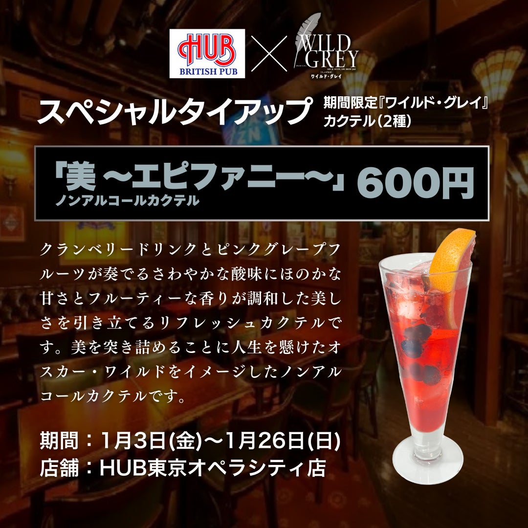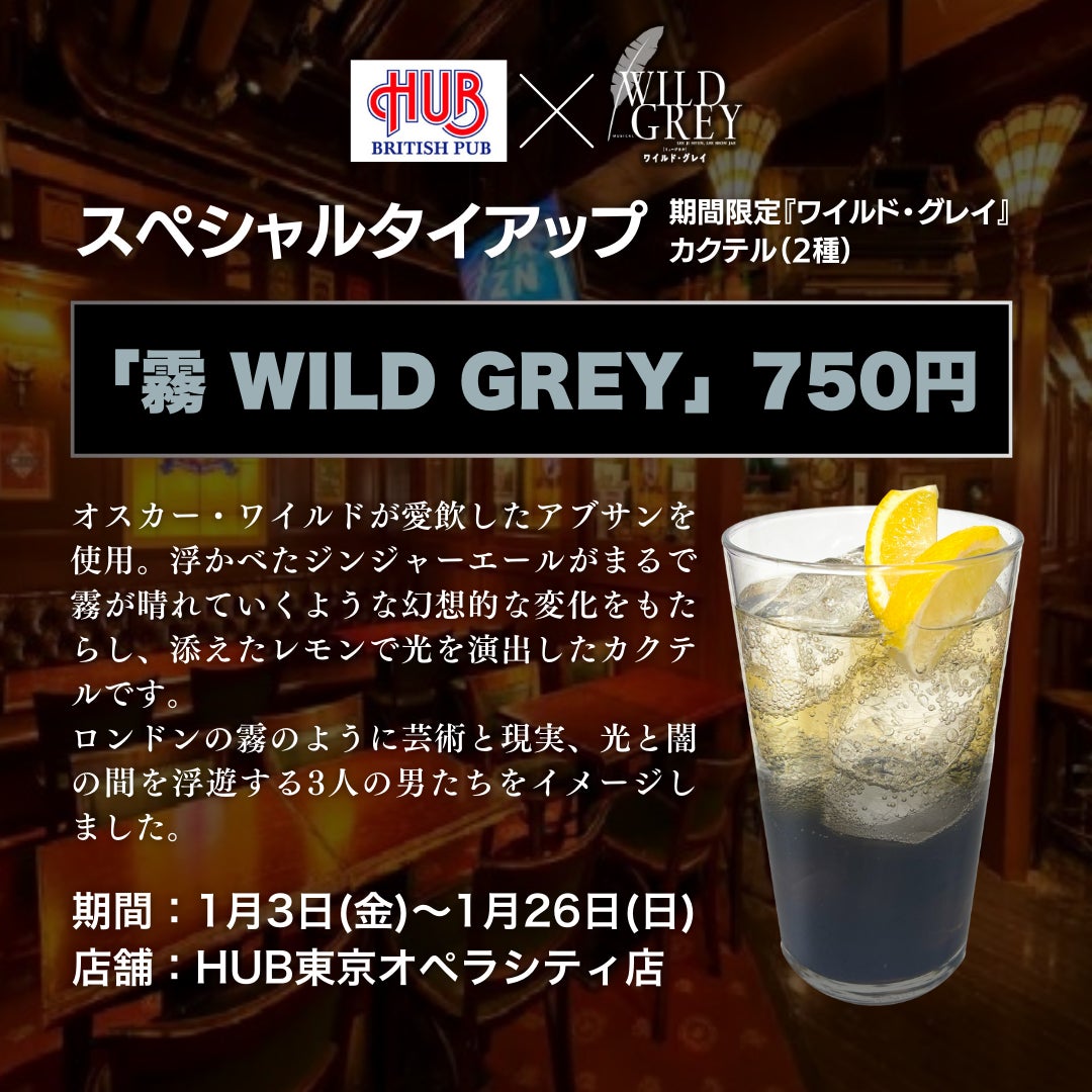 【1月3日~1月26日】英国風PUB「HUB」×ミュージカル『ワイルド・グレイ』スペシャルタイアップ決定!