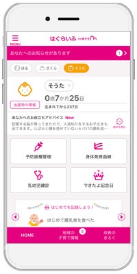 福島県南相馬市に採用された『はぐらいふ』は、スマートフォン・タブレット端末・PCに対応したサービスで、妊産婦と子どもの健康データの記録・管理や予防接種のスケジュール管理、出産・育児に関するアドバイスの提供、離れた地域に住む祖父母など家族との共有機能や、市が配信する地域の情報をお知らせするなど、育児や仕事に忙しい母親や父親を助けてくれる便利な機能が充実しています。