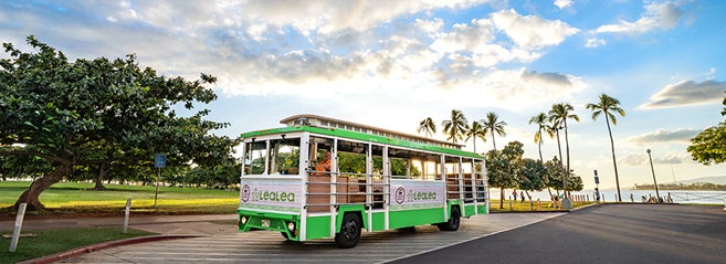 また、本日より、ハワイアン航空のマイレージプログラム「HawaiianMiles」において、LeaLeaトロリー乗車券と交換が可能になります。5,000マイルで1日乗車券、8,500マイルで4日間乗車券に交換いただけます。引換えは、ハワイ到着後、LeaLeaラウンジ(ロイヤルハワイアンセンター)にて行います。個人手配のお客様にも、島内の移動手段として便利なLeaLeaトロリーをご活用いただき、更なる充実した滞在をお楽しみいただければと考えております。