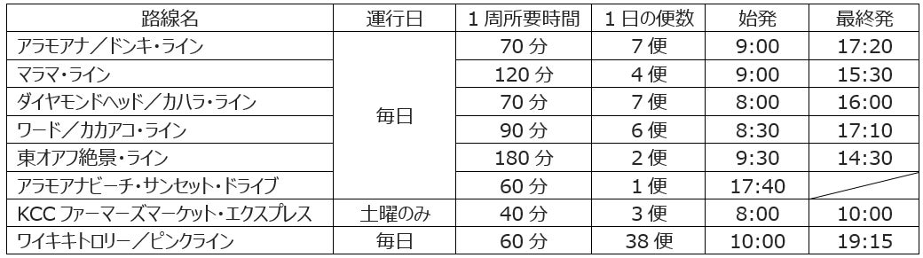 HISは2009年4月よりLeaLeaトロリーの運行を開始し、ワイキキおよびホノルル中心地から外れた観光名所や商業施設へも安心・安全なアクセスを提供してまいりました。コロナ禍により2020年3月より運行を休止しておりましたが、2022年11月には、ショッピングスポットを巡る「ショッピングライン」、ハワイの歴史と文化を感じる名所観光スポットを巡る「マラマ・ライン」の独自2路線を新設の上、約2年半ぶりに再開しておりました。このたび、海外旅行者の復調傾向を受け、2023年11月より独自7路線(6ラインと1エクスプレス)およびワイキキトロリー1路線の8路線に大幅拡大いたします。
