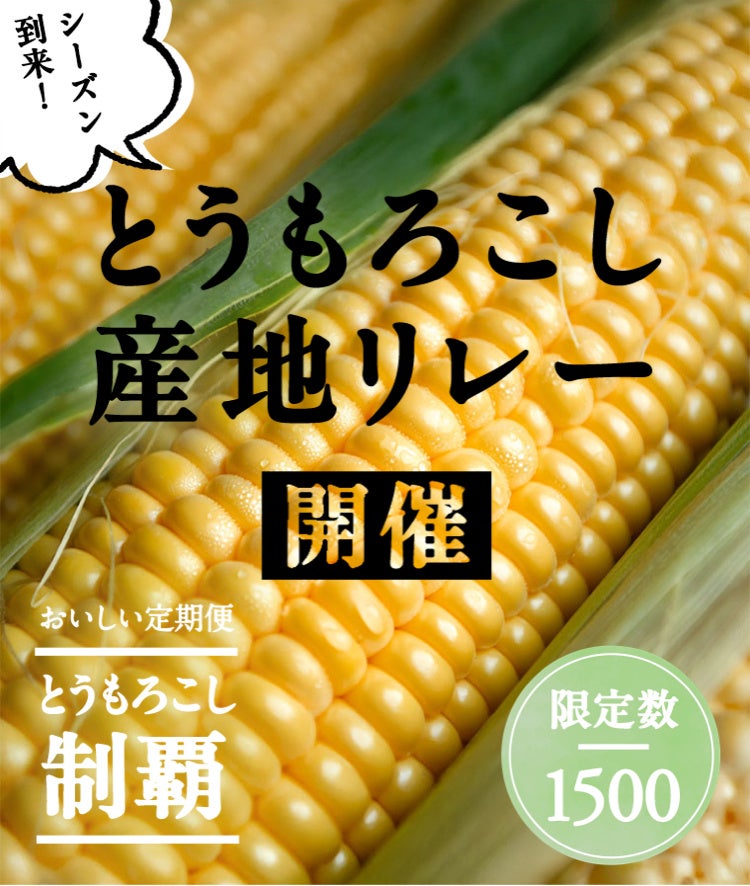 甘くてみずみずしい最旬の”とうもろこし”を食べ比べできる「とうもろこし制覇」サブスクで長崎から北海道までのとうもろこし7品種をお届け!(6/2〜)
