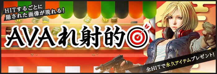 指定ミッションの達成数に応じて、イベントページ内の弾数が補充され、的を撃ち抜く度にAVA-BOXプレイチケットなど豪華アイテムが獲得できる「AVAれ射的」を開催いたしました。