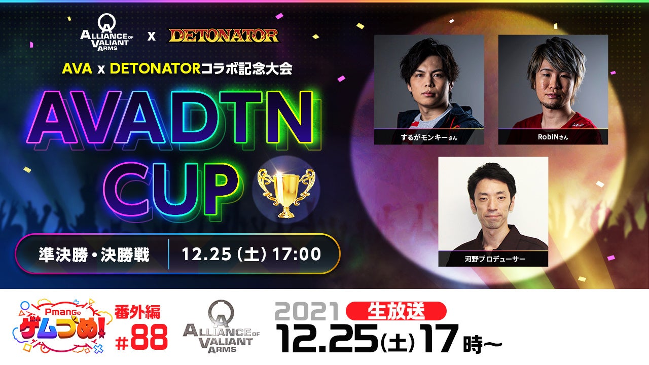 株式会社ゲームオン[本社:東京都渋谷区、代表取締役社長:李 相燁(イ サンヨプ)]は、自社が運営するオンラインFPS『Alliance of Valiant Arms』(アライアンス オブ ヴァリアント アームズ、以下『AVA』)につきまして、2021年12月25日(土)に AVAxDETONATORコラボ記念大会「AVADTN CUP」決勝トーナメントを開催いたします。