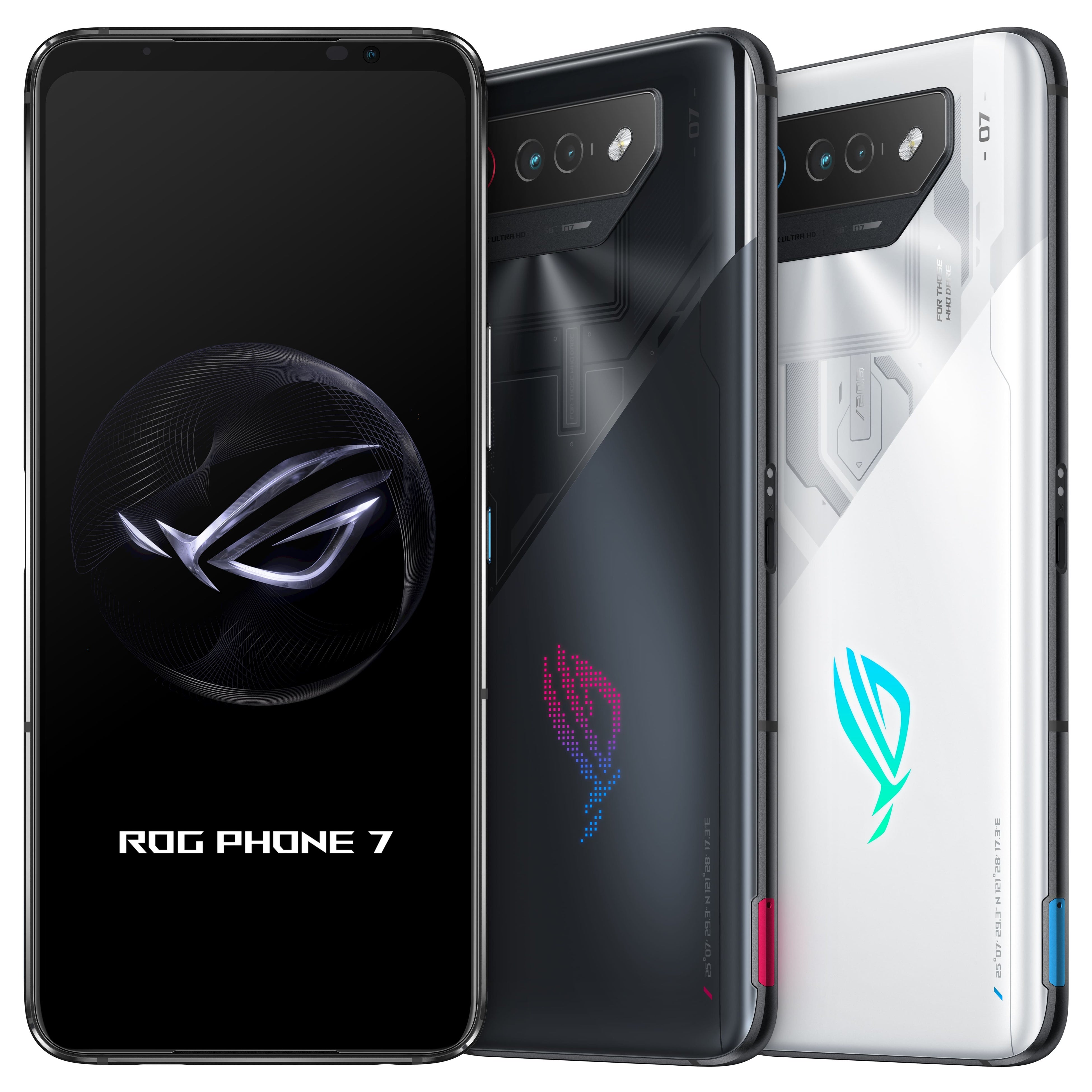 左からROG Phone 7 Ultimate、ROG Phone 7 ファントムブラック、ROG Phone 7 ストームホワイト