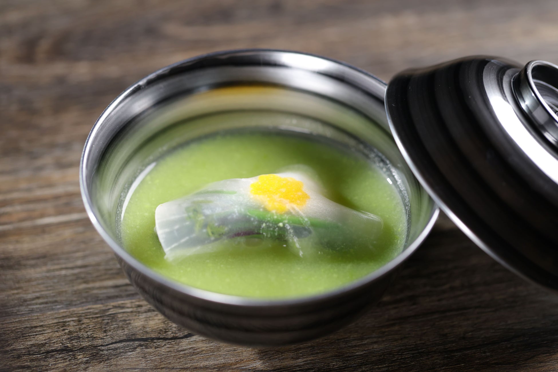 昆布出汁にこだわった「熱々!北海道産アイナメの真丈~枝豆のすり流し仕立て~」
