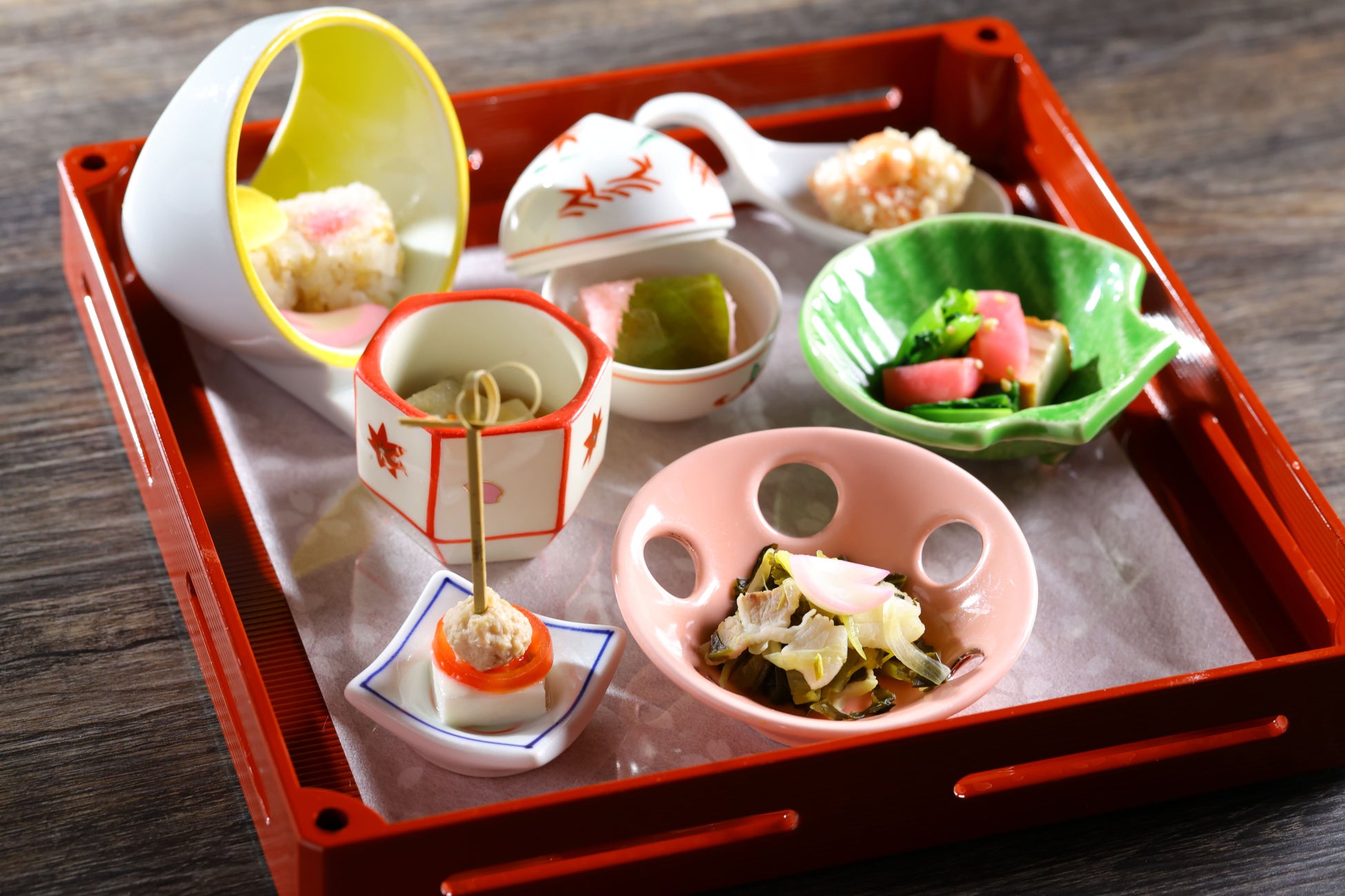 ・湯河原美術館名誉館長・平松礼二氏の作品『月とさくらと』(2015)に材を取った…ちりめんじゃこ入り「月と桜の手毬寿司」