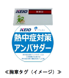 期間中、鉄道現業職場で勤務する約1,000名の社員が、熱中症対策アンバサダー養成講座を受講し、「熱中症対策アンバサダー」の資格取得を目指します。また、鉄道現業職場で勤務する、当資格を取得した一部社員(約1,000名)が「ポカリスエット」や「ポカリスエット イオンウォーター」といったペットボトル飲料(以下、イオン飲料)」の携帯と胸章タグを着用し、積極的な水分補給・熱中症対策の啓発を実践します。