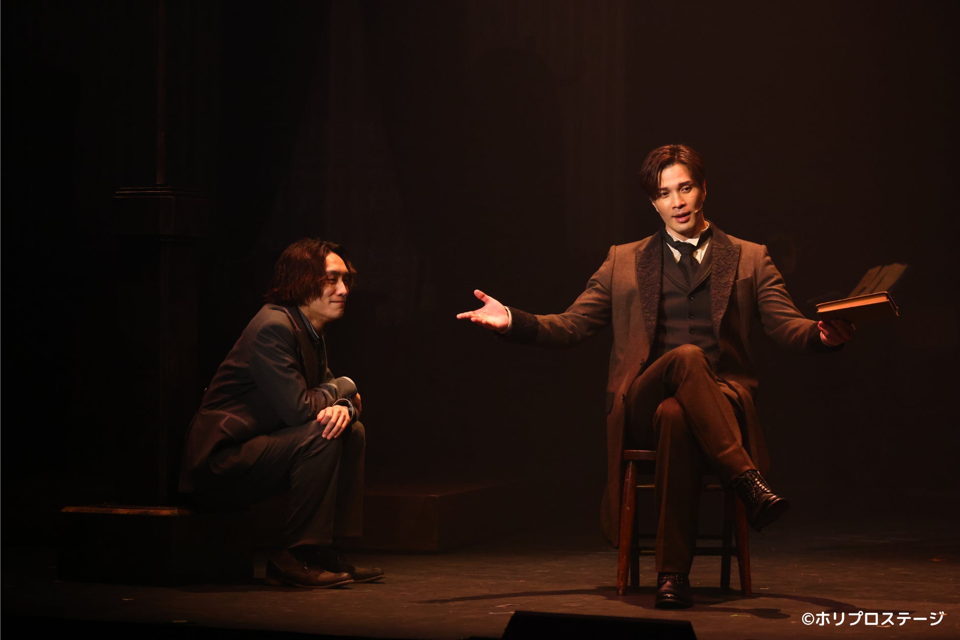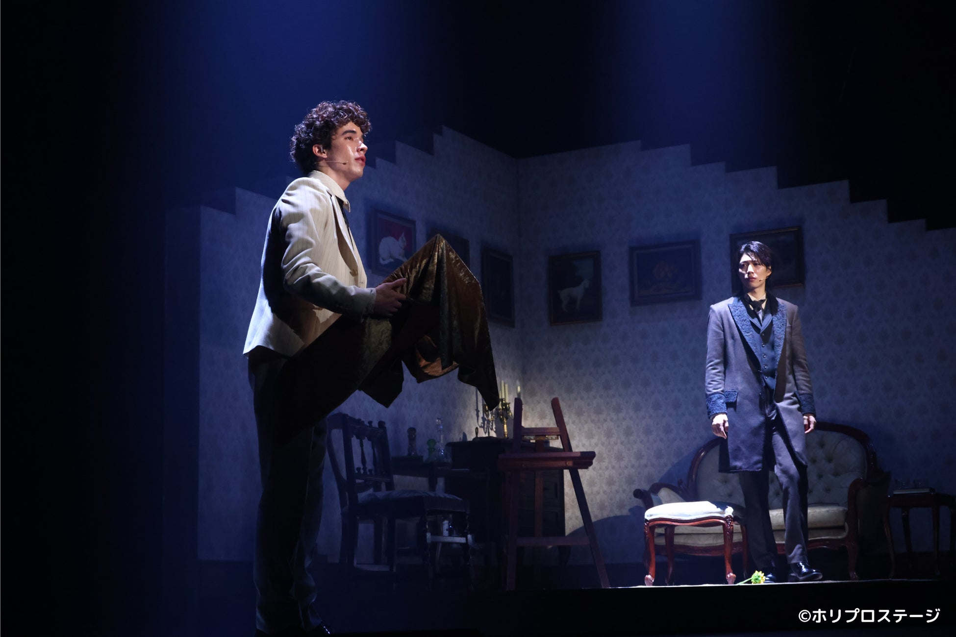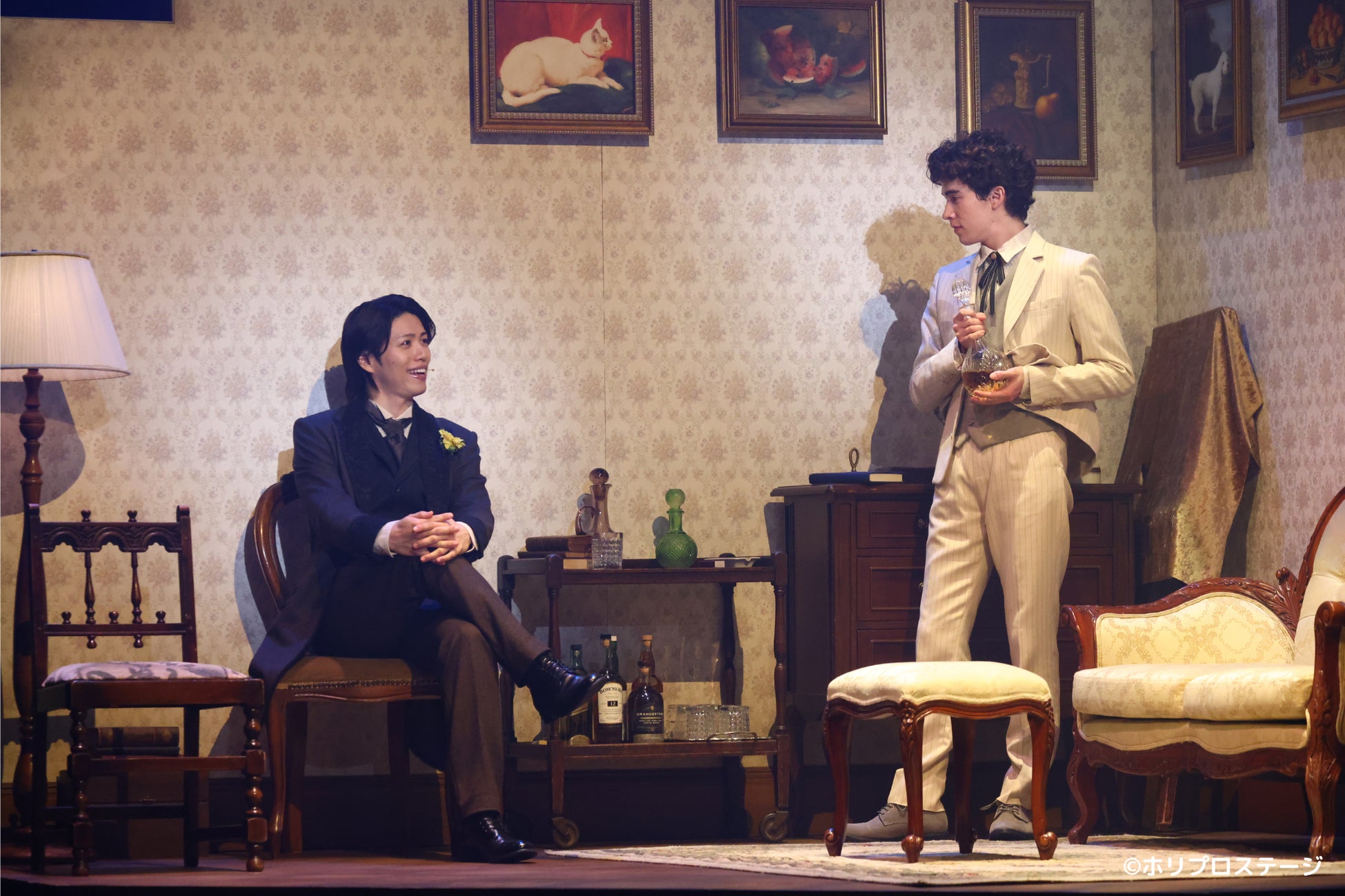 オスカー・ワイルドを演じるのは、多くの舞台で確かな実力を築いてきた廣瀬友祐。舞台に立つだけで空気を変える存在感を放ち、力強くも儚さを感じさせる歌声が、ワイルドの情熱や内に秘めた苦悩を際立たせている。