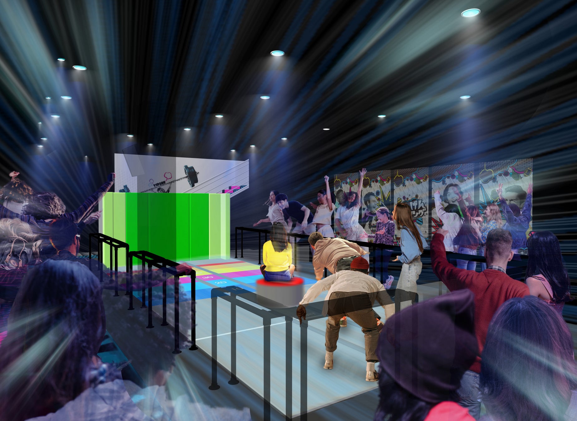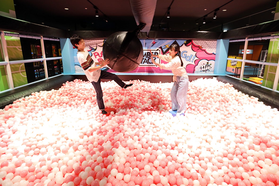 体を動かしながらまるでバラエティ番組に参加しているような体験ができる新感覚のバラエティスポーツ施設です。学生グループやファミリーのお客さまから、「全力ではしゃげる施設」と多くの支持を得ています。