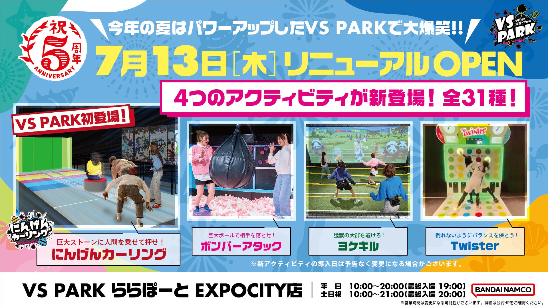 オープン5周年を迎える「VS PARK ららぽーとEXPOCITY店」をはじめとして、夏休みにはぜひパワーアップする「VS PARK」をお楽しみください!