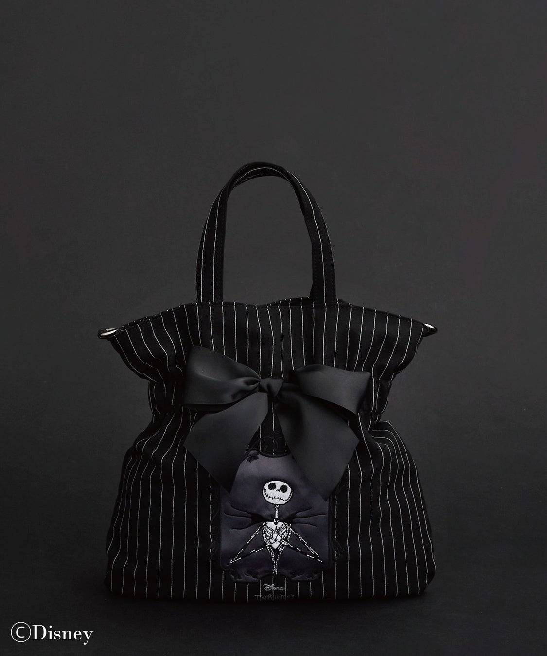 フロントのアートが目を惹くキャンバストートには、「ジャック・スケリントン」や「サリー」、「ゼロ」、「ヴァンパイア・テディ」が大集合。サイドの縁取りと持ち手はブラックで統一し、コーディネートにも合わせやすいデザインに仕上げました。2wayミニトートと巾着ポーチには、「ジャック・スケリントン」のコスチュームをイメージしたストライプ生地を使用。キャラクターの刺繍とシルバー箔のロゴプリントが華やかさを演出します。