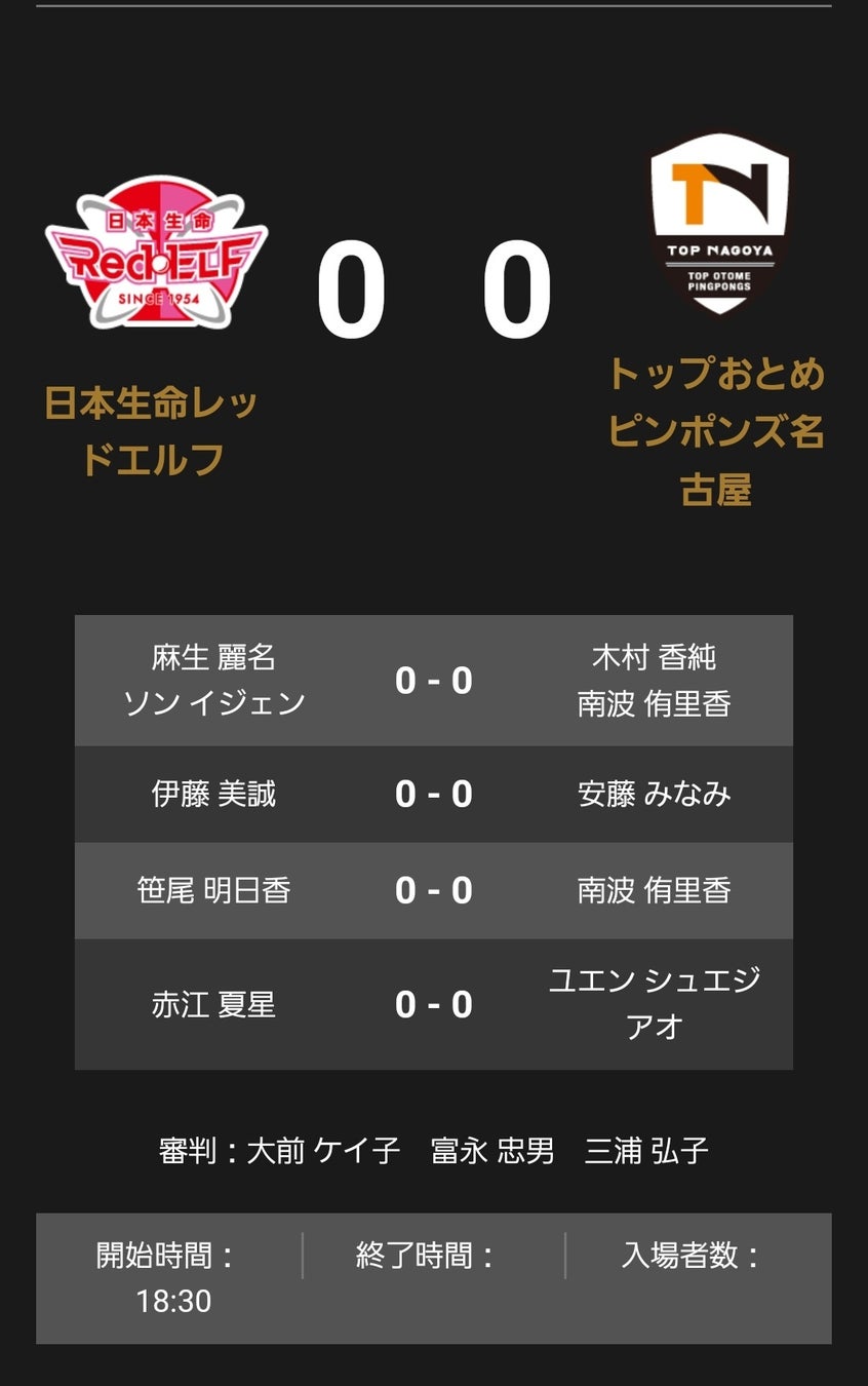 「日本生命レッドエルフ vs トップおとめピンポンズ名古屋