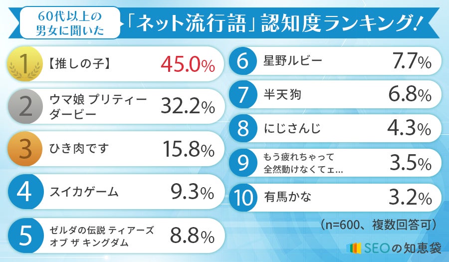 60代以上の男女に聞いた「ネット流行語」認知度ランキング! |