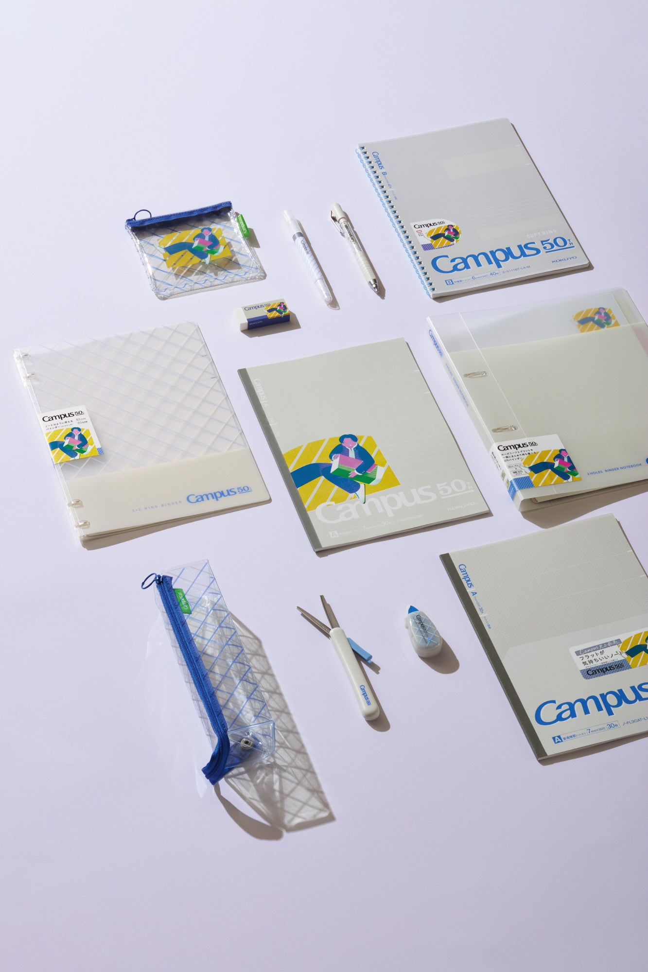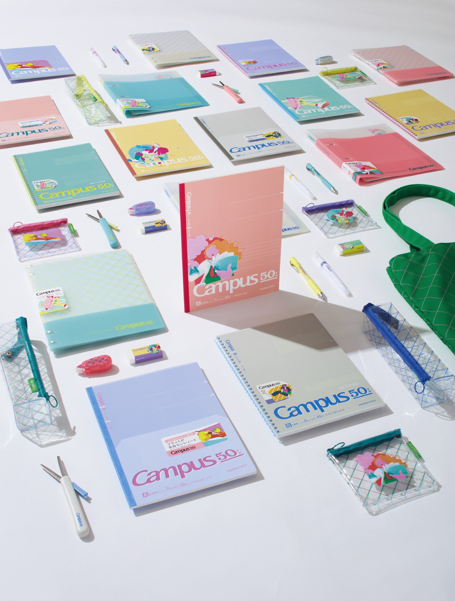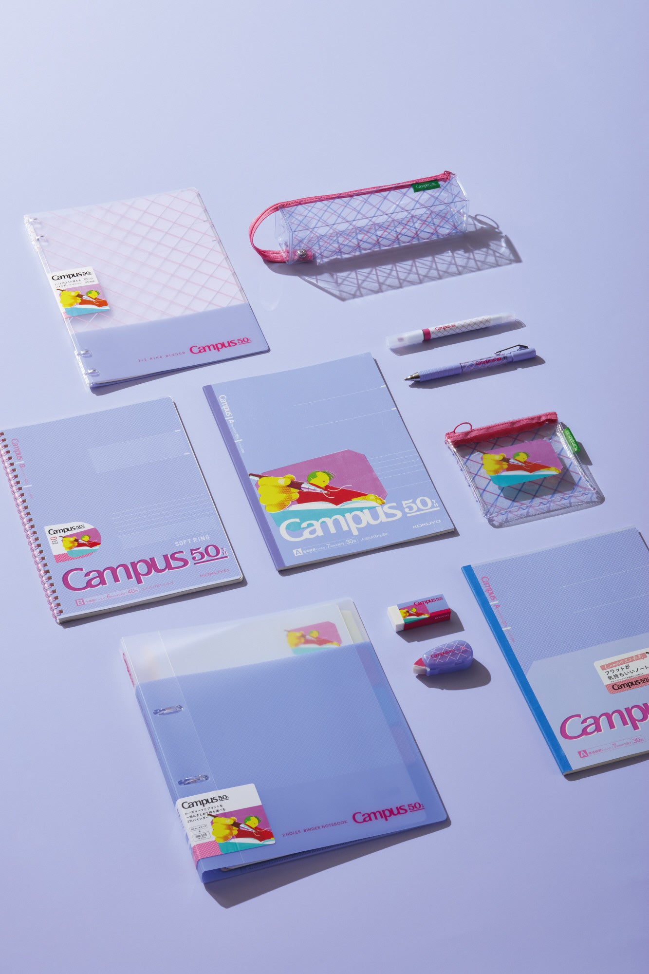 今回のキャンパス50周年記念限定アイテムでは、学生のニーズに応え続けるとともに、より学生生活に寄り添ったブランドとなることを目指し、ノートだけではなく、シャープペンシルやペンケースなどの文具一式をキャンパスブランドとしてラインアップしています。また、現代の学生生活において必需品となっているバッグやポーチといった、教材やコスメなどの小物類の持ち運びに便利なアイテムもご用意しました。