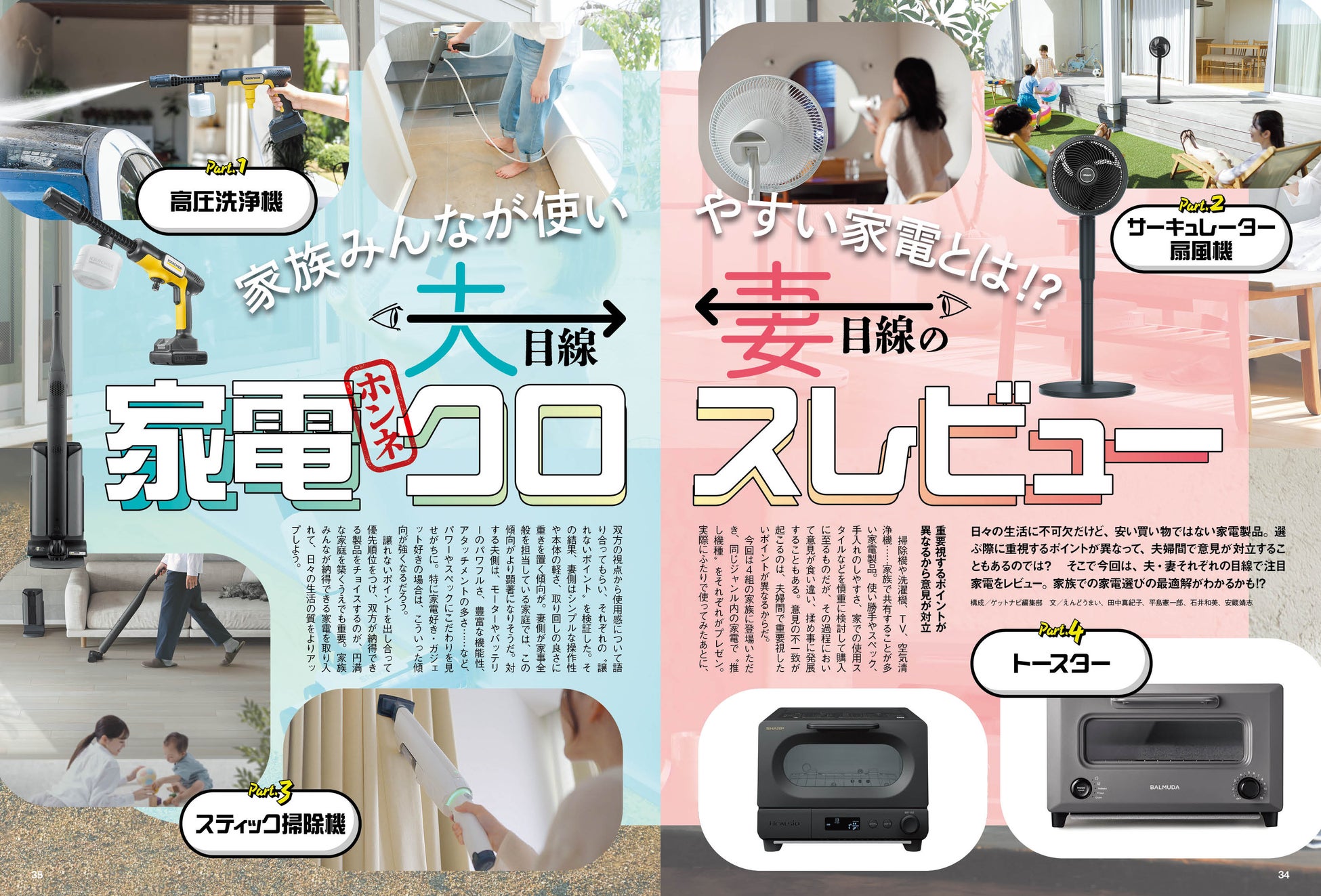 家電製品は日々の生活に不可欠ですが、安い買い物ではありません。夫婦間で選ぶ際に重視するポイントが異なって、意見が対立することもあるのでは? そこで今月号では、家電ライターのご夫婦やパートナーがそれぞれの目線でトースターや掃除機といった家族で共有することが多い家電の注目モデルをレビュー。ご家族での家電選びの最適解がわかるかもしれません!