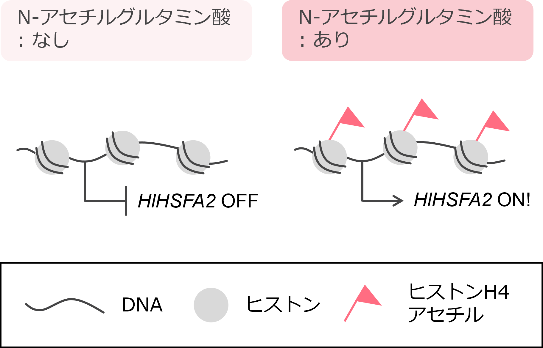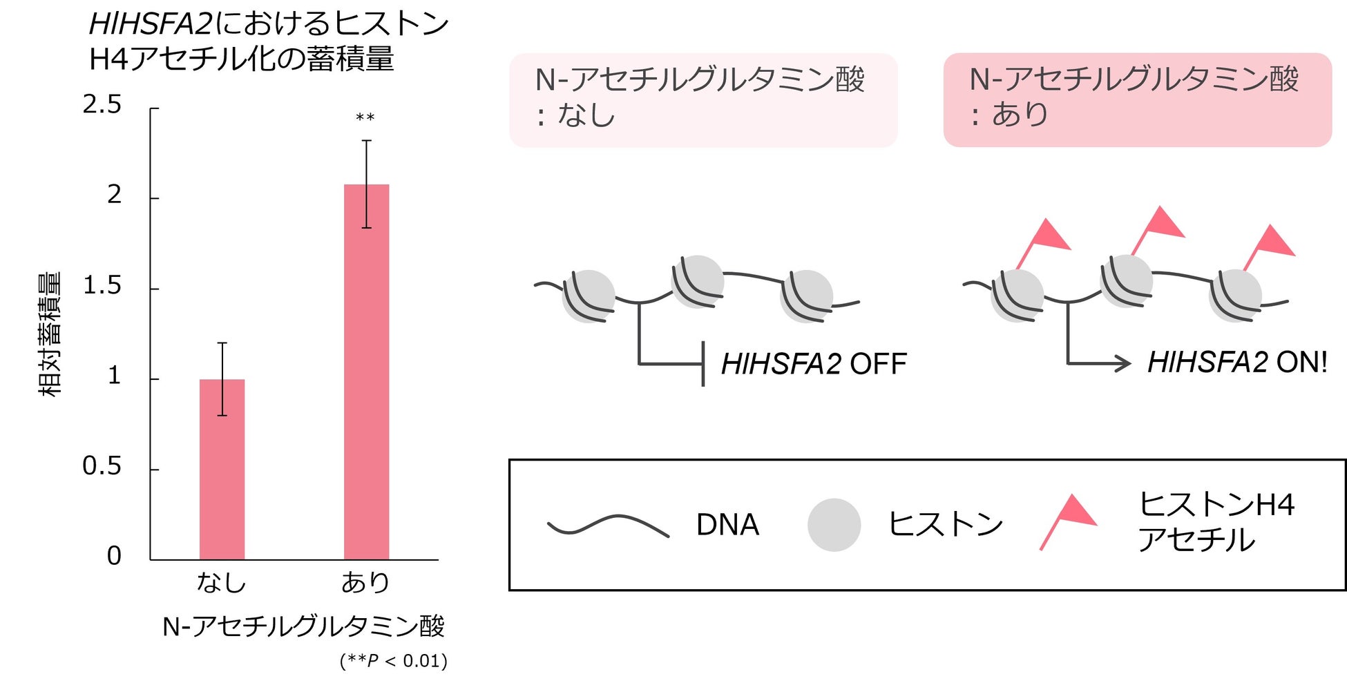3)NAGによるストレス応答遺伝子の活性化には、生物種を超えて遺伝子の機能制御に重要な役割をもつエピジェネティック修飾※7が関与していることを明らかにしました。