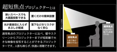 一般的なプロジェクターでは100インチの映像投影に約2.5〜3mの距離が必要とされ、設置場所が限られてしまいます。また投影時に人影が映り込んでしまうという課題もありました。