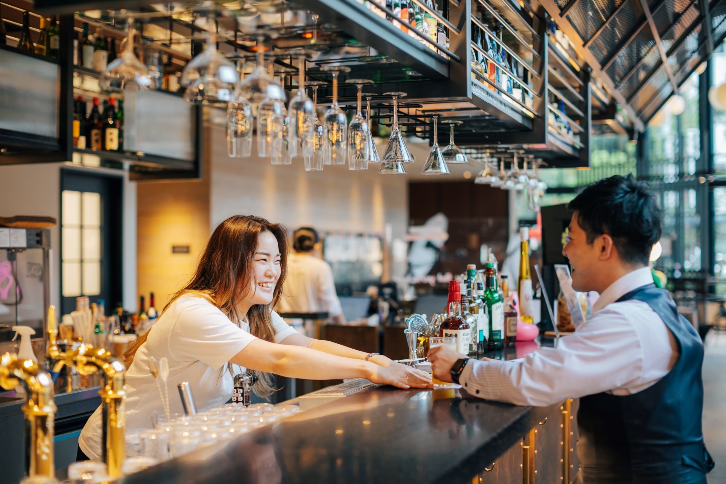 モクシー大阪新梅田の開放的なラウンジ空間の中で、 大人な時間をお楽しみください。