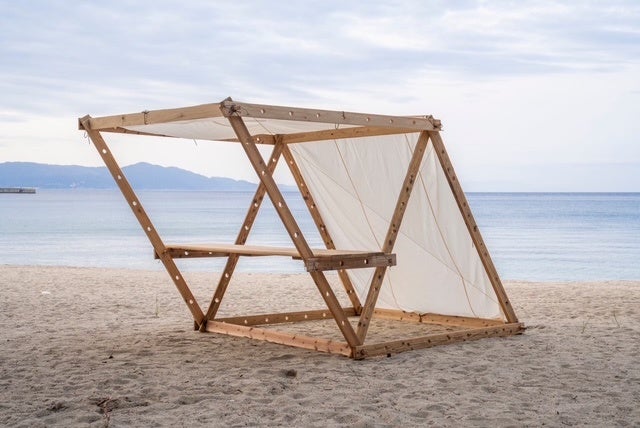 木と紐と人とで組み立てる構造体「hitoto(ヒトト)」