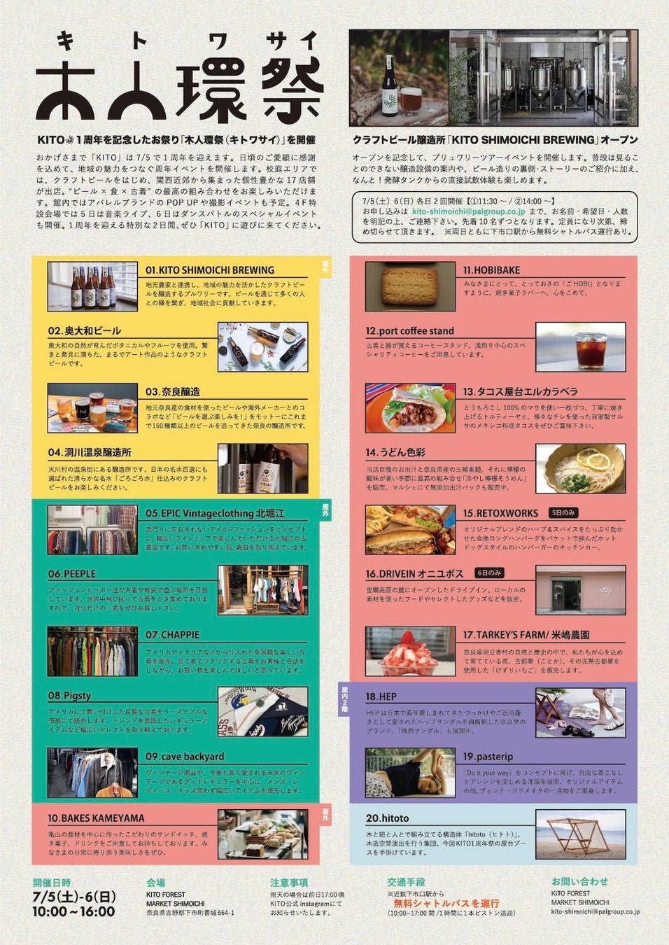 7/5.6 土日 [ KITO FOREST MARKET SHIMMOICHI 1周年 ]木人環祭(キトワサイ)開催