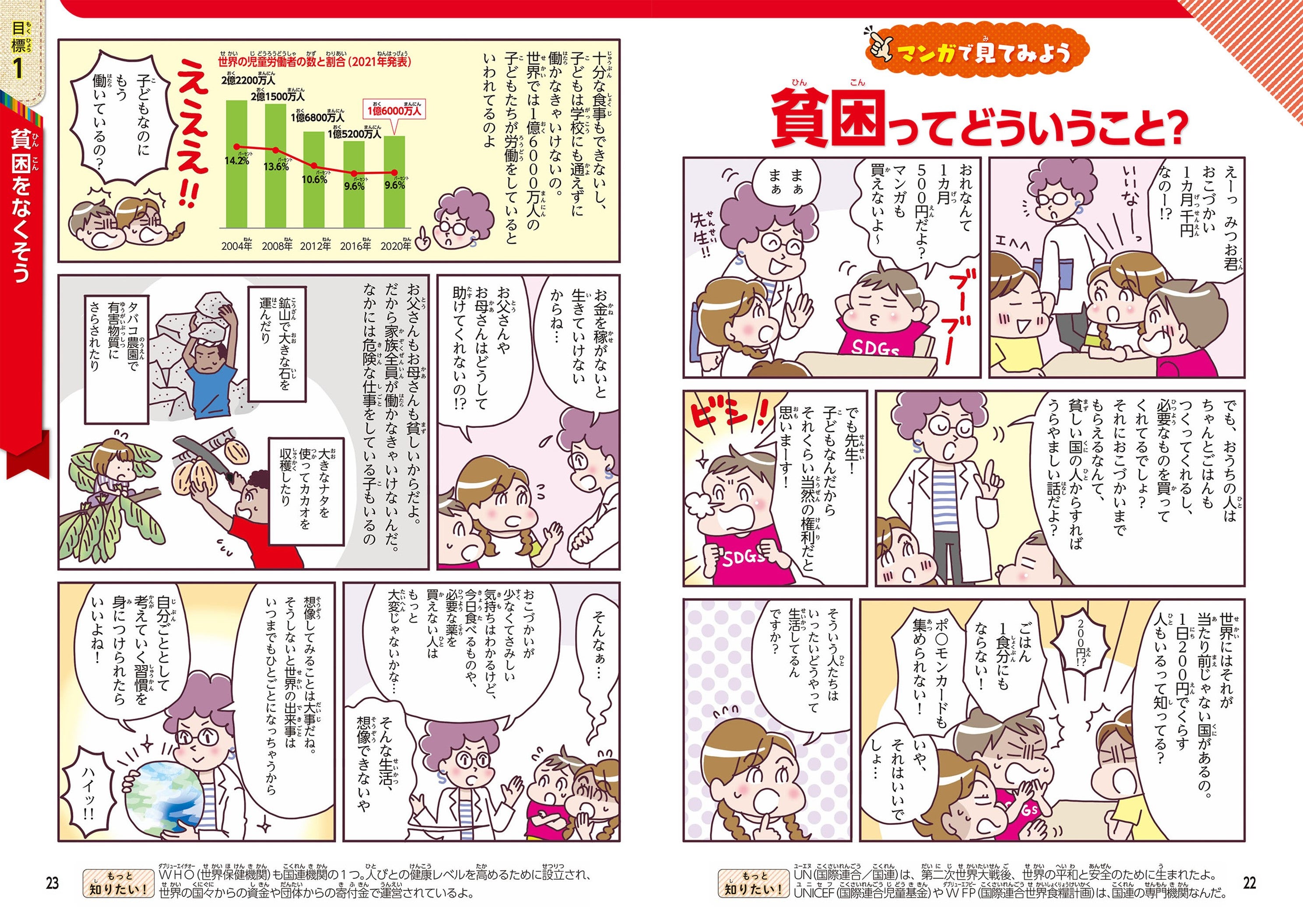 小学校の学習やメディアでの露出も増え、中学受験にも頻出しているSDGs(持続可能な開発目標)。本書では、国連が定めたSDGsの17の目標ごとに、楽しいマンガで解説しています。わかりやすい地図や図解、復習クイズやコラムなど、より深く理解し、楽しく学べる工夫も満載です。