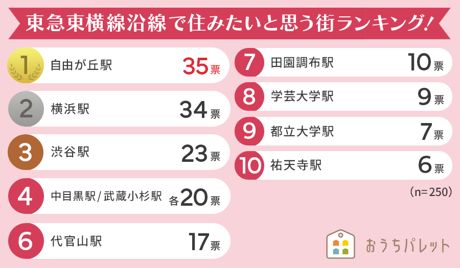 おうちパレット・女性が選ぶ東急東横線沿線の住みたい街に関する調査