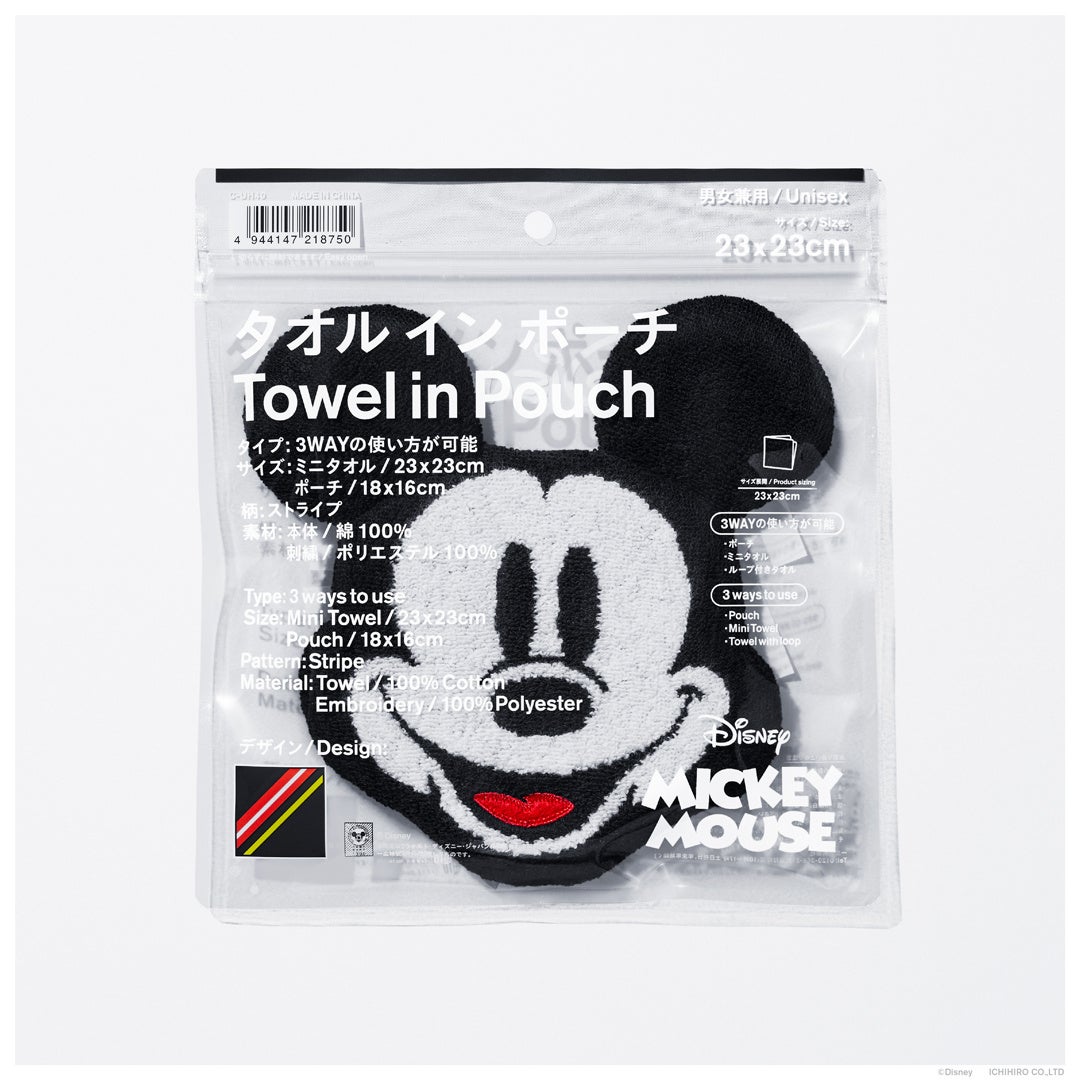 このたび、ディズニー社の人気キャラクター「ミッキーマウス」「マリー」のタオルインポーチを発売いたします。ハンドタオル、ポーチ、ループタオルの3WAYで持ち運びにも、普段使いにも便利なアイテムです。