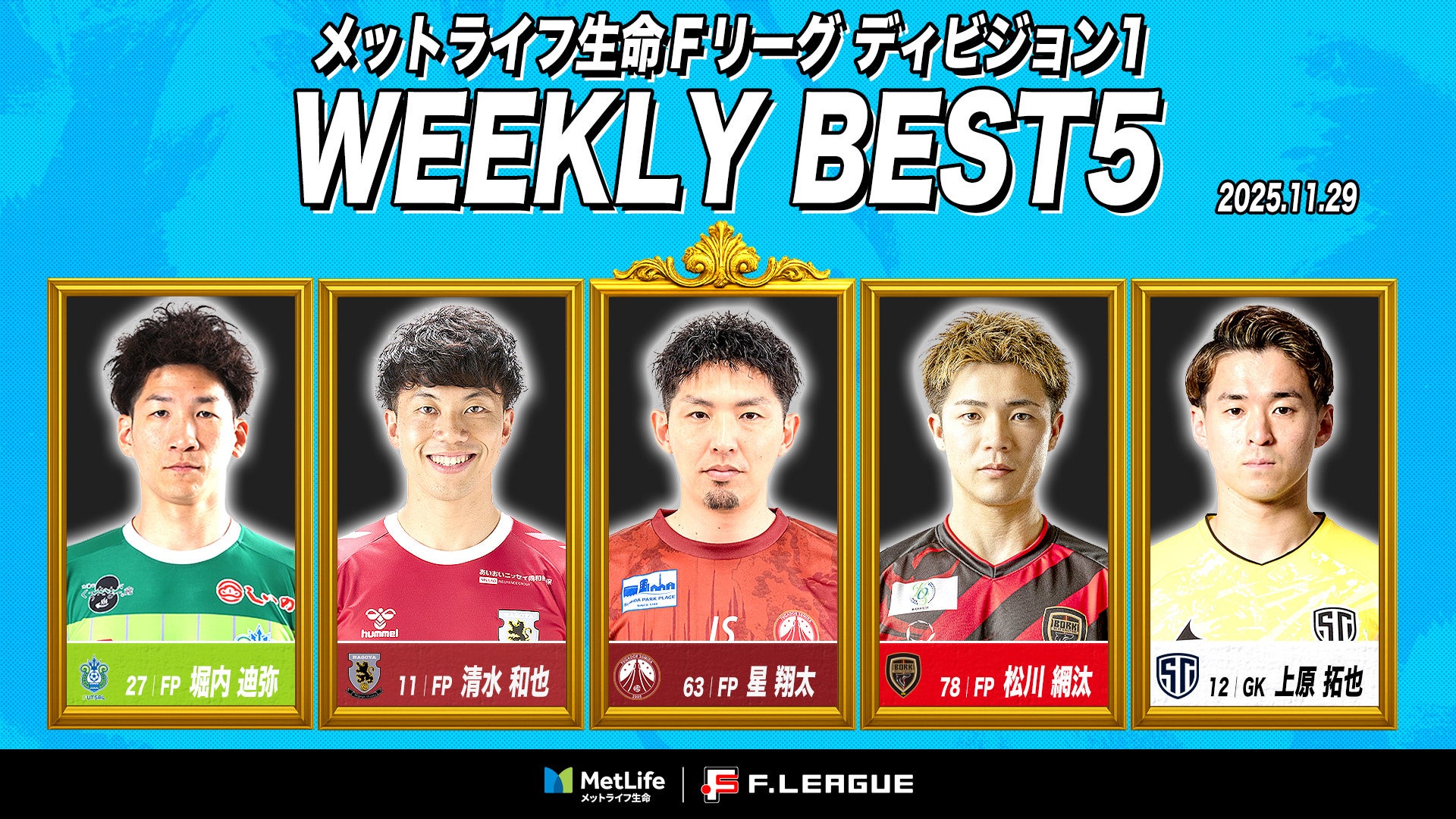 11月29日(土)に実施したメットライフ生命Fリーグ2025-26 ディビジョン1 第19節におけるベスト5をお知らせいたします。