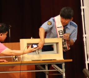 侵入窃盗が侵入強盗になっていることが怖いと思った。今回のイベントで玉置さんのセミナーや防犯フィルムのデモンストレーションを見れたことで、保護者の侵入犯罪に対する意識の変化が感じられた。園児もダス犬を見れて喜んでいた。○×クイズも大変楽しんでいました。