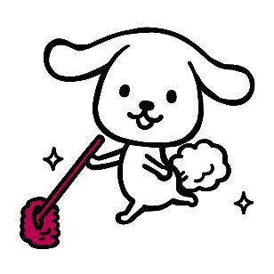 ダスキン訪販グループのキャラクター。モップのようなフサフサのシッポをもつ犬。性格はキレイ好 きで時々おっちょこちょい。人を喜ばせること、おそうじ、ドーナツ、お花が好き。