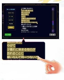 楽曲の歌詞を見ながら歌いたい部分の確認ができます。なぞった歌詞の部分だけを予約することも可能です。