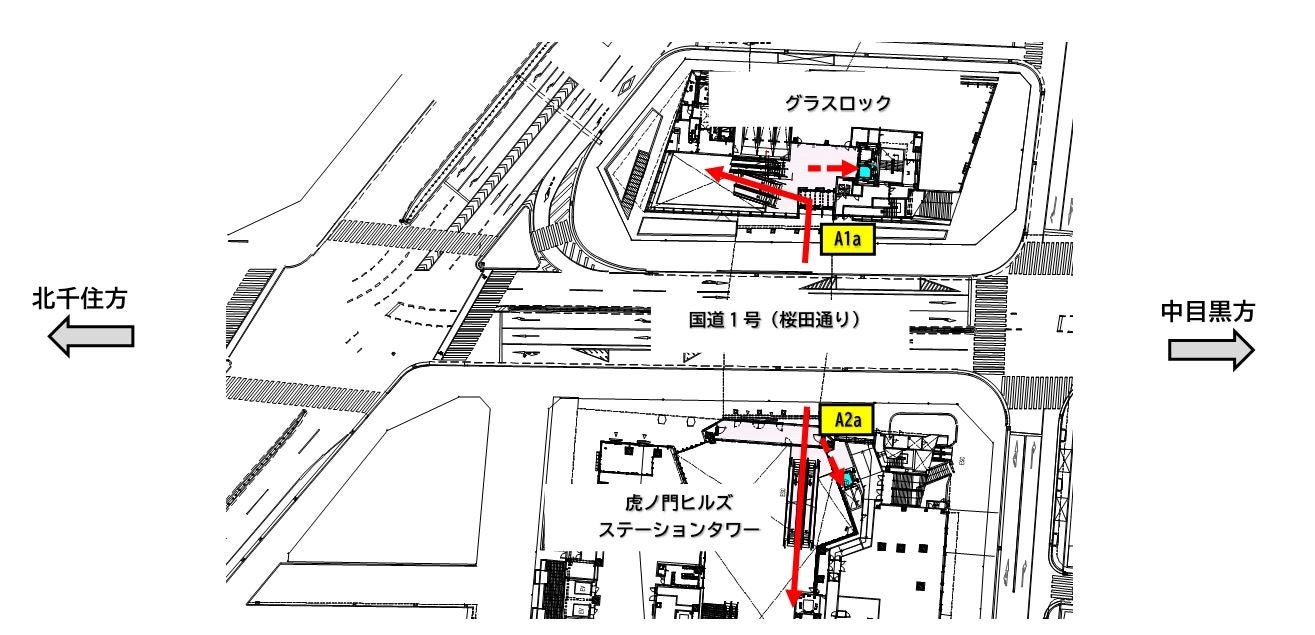 また、地上出入口については、A1a・A2a出入口の新設に伴い、現在のA1・A2出入口は閉鎖となります。