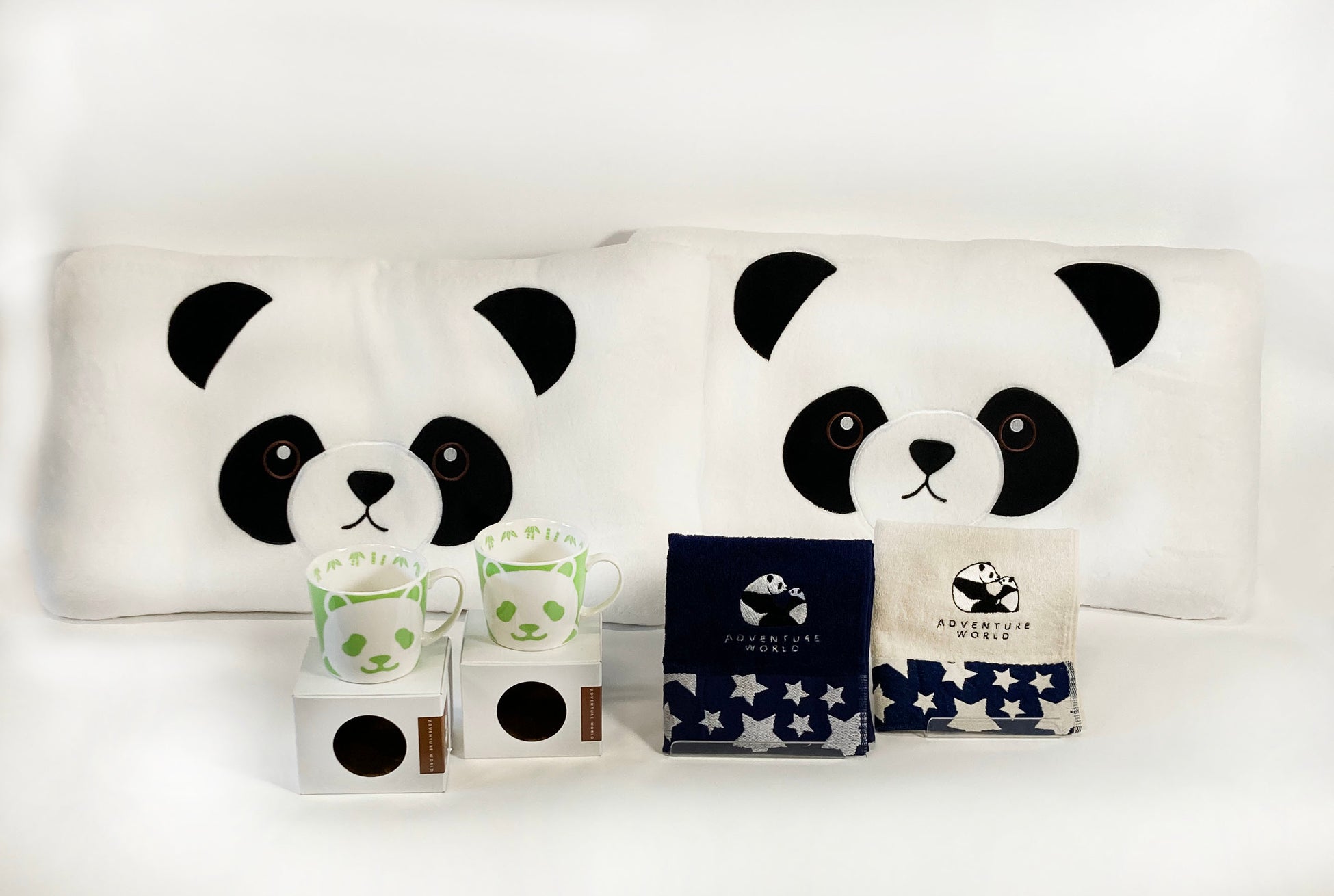 【特典】1室ご利用につき、アドベンチャーワールドオリジナルのパンダくつろぎセット(フェイス枕2個+マグカップ2個+ハンドタオル2枚)をプレゼント。
