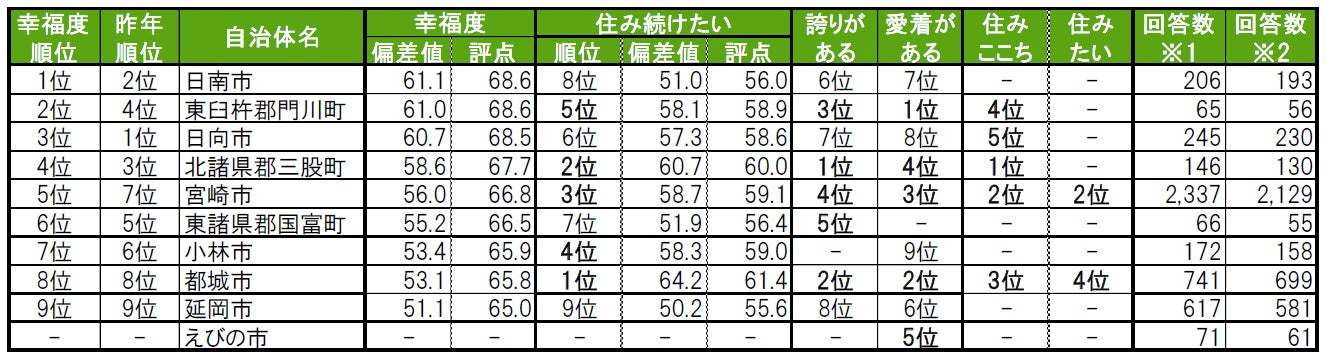いい部屋ネット「街の幸福度 & 住み続けたい街ランキング2023<宮崎県版>」(街の住みここちランキング特別集計)発表