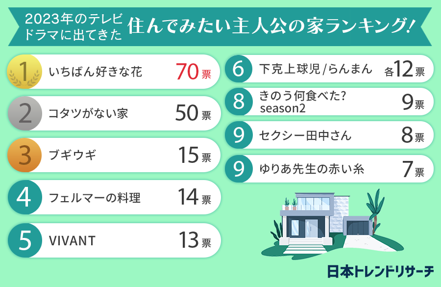 では、今年2023年に放送されたドラマの中で、多くの人が「住みたい!」と思ったのはどのドラマに登場する家なのでしょうか。