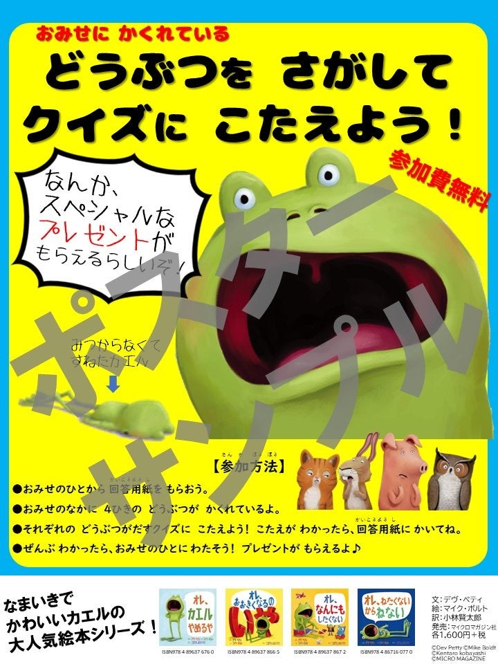 マイクロマガジン社(東京都中央区)は、夏に向け人気の絵本『オレ、カエルやめるや』の書店店頭イベント用キットの提供を開始いたしました。