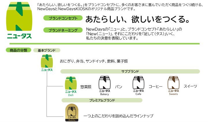 株式会社 JR 東日本クロスステーション リテールカンパニーが運営するコンビニエンスストアで、「行きも、帰りも、いつも近くに。」をテーマに、日常(朝、昼、夜)に寄り添った魅力ある商品・サービスを提供します。新たなオリジナル商品ブランド「ニュータス」など、 NewDaysならではの独自の品揃えで、お客さまの日常をサポートしていきます。
