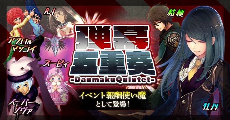 株式会社ケイブ(本社:東京都目黒区、代表取締役社長:秋田英好、証券コード:3760)が配信中のシューティングゲームアプリ『ゴシックは魔法乙女~さっさと契約しなさい!~』(『ごまおつ』)におきまして、同社が提供するシューティングゲーム『赤い刀』『デススマイルズⅡ魔界のメリークリスマス』『ピンクスゥイーツ~鋳薔薇それから~』『弾銃フィーバロン』『怒首領蜂大復活』とのコラボイベント『弾幕五重奏-DanmakuQuintet-』を3月19日(火)より開始いたしました。