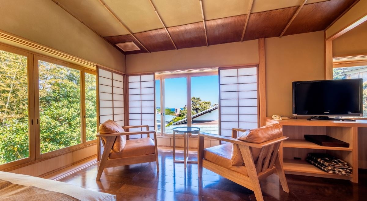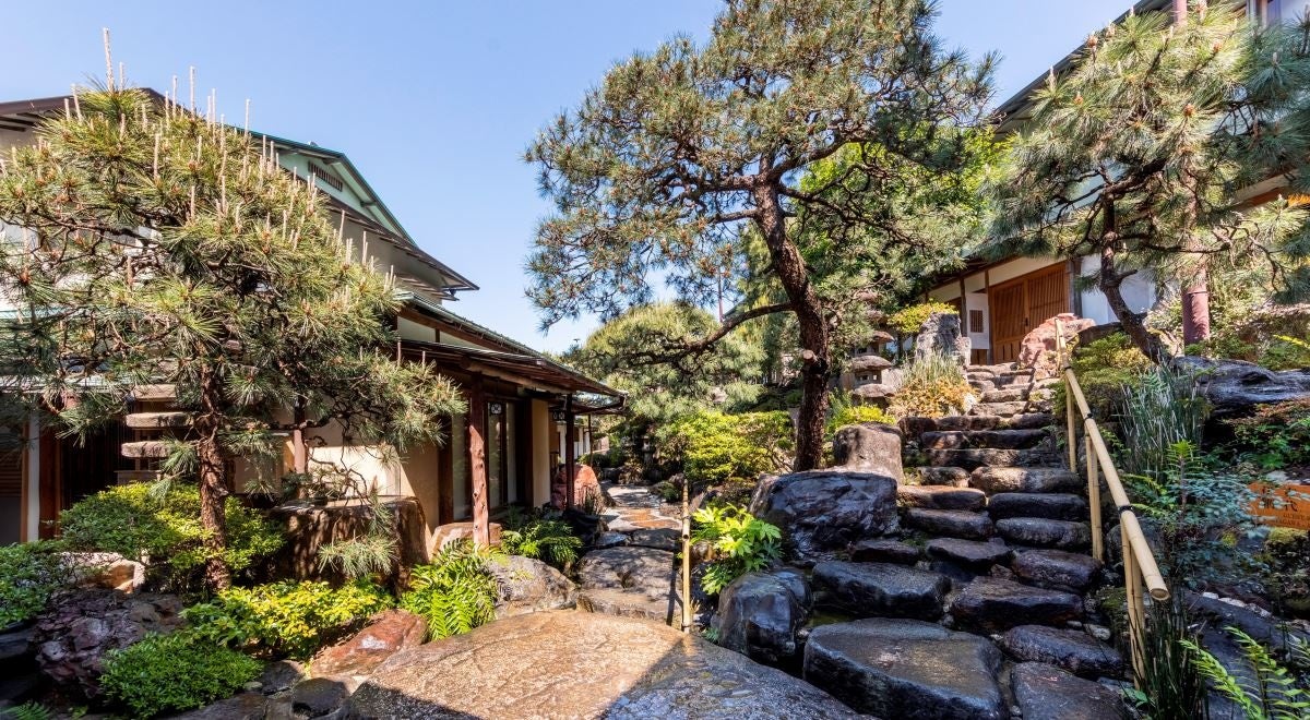 「あたみ石亭」は、約3000坪の石庭園に離れ客室が点在し、石灯籠や銘石、松や流水が非日常の時を演出致します。3本の自家源泉から温泉を引き、各客室や露天風呂、大浴場、貸切風呂に至るまですべてのお風呂で温泉の湯浴みをお楽しみいただけます。お食事はプレミアムダイニング雲珠(うず)にて和と現代的な感性が融合した開放的な空間で、ご夕食は旬の食材を使用した会席料理、ご朝食には地産の干物や野菜を盛り込んだ和定食をご用意。客室は離れ家をメインとし、露天風呂付き客室や貴賓室、特別室など数寄屋造りで建てられたそれぞれ趣の異なる26室からお選びいただけます。どうぞ日常を忘れ、ゆったりとしたひとときをお過ごしくださいませ。