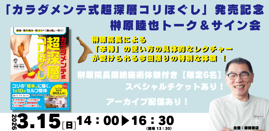 『カラダメンテ式 超深層コリほぐし』の発売を記念し、榊原睦也氏のトーク&サイン会を開催致します。