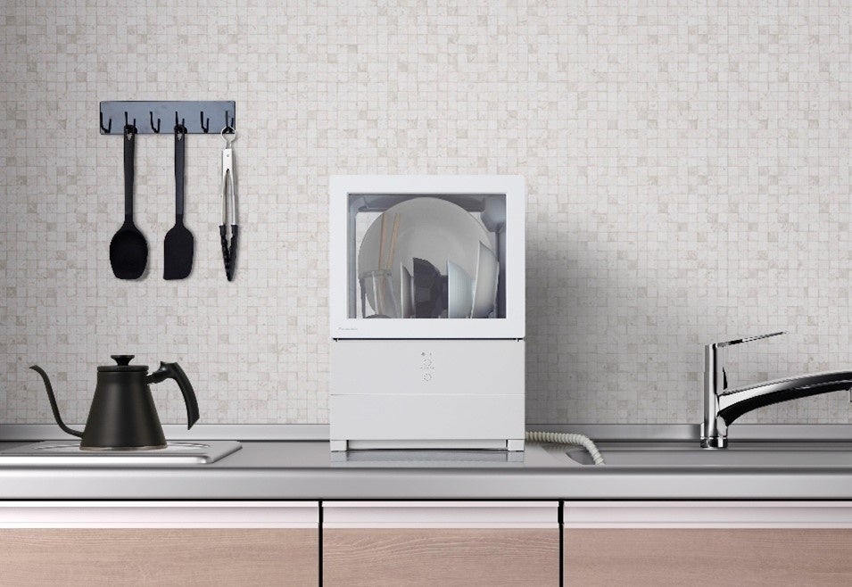 ひとり暮らしのキッチンにも置きやすい業界最小コンパクト設計で、ほぼ、A4ファイルサイズのスペースに置ける。約1人分の食器6点が入ります。コンパクトでも洗浄力は強力。高い水温、強力水流、強力な洗剤の3つの力で手洗いよりキレイに洗えます。