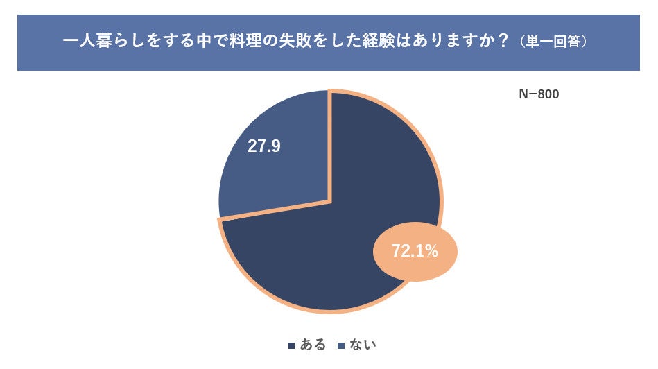 ・一人暮らしでの料理の失敗経験がある人は7割以上いることが判明。