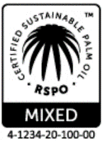 RSPO(持続可能なパーム油のための円卓会議)が定める既定の条件(商品に使用されるパーム油由来の成分のうち95%以上を認証油とするなど)を満たした場合に、企業が使用可能となるロゴマーク。