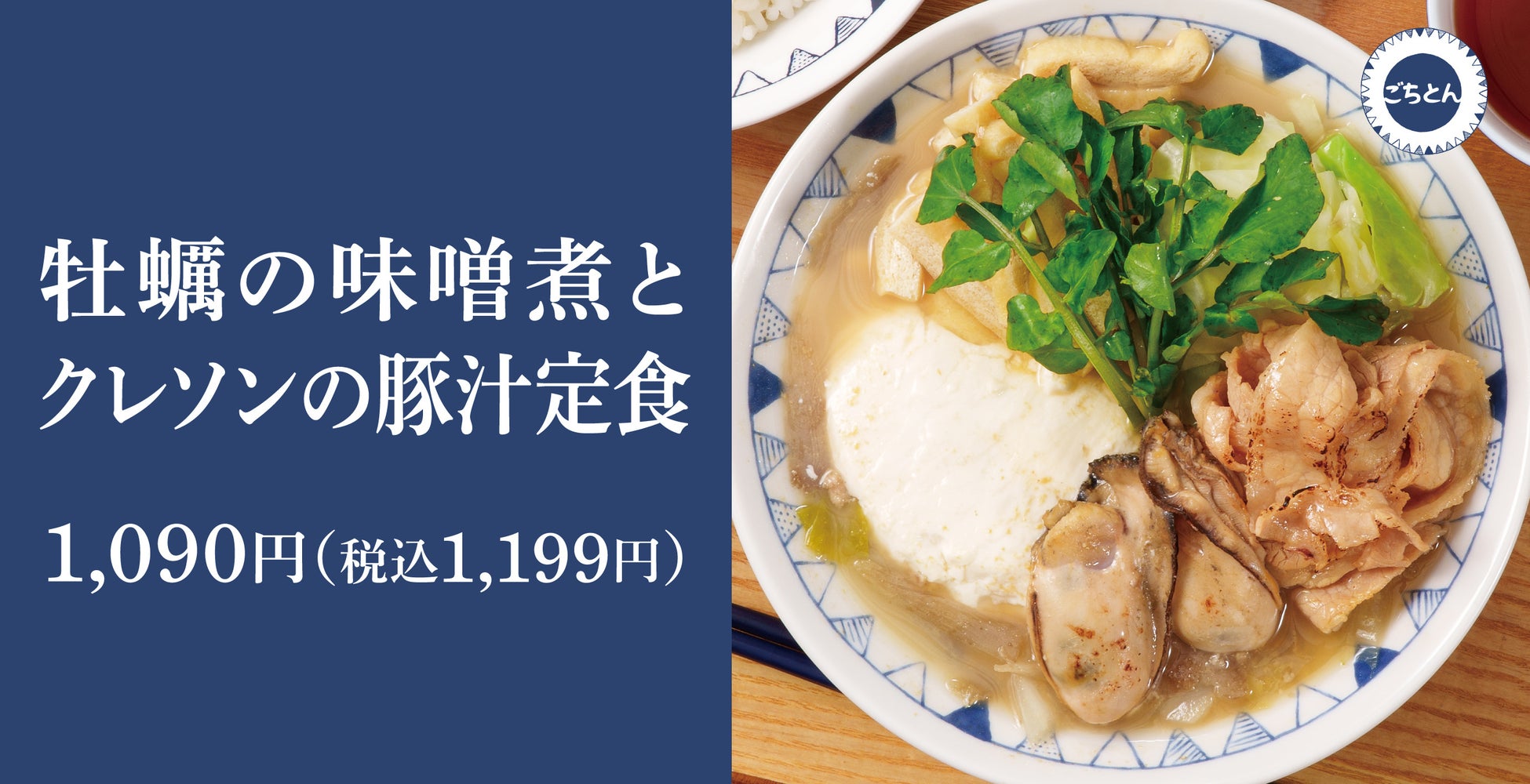 牡蠣本来の旨味を堪能「牡蠣の味噌煮とクレソンの豚汁定食」ごちとんに新登場!