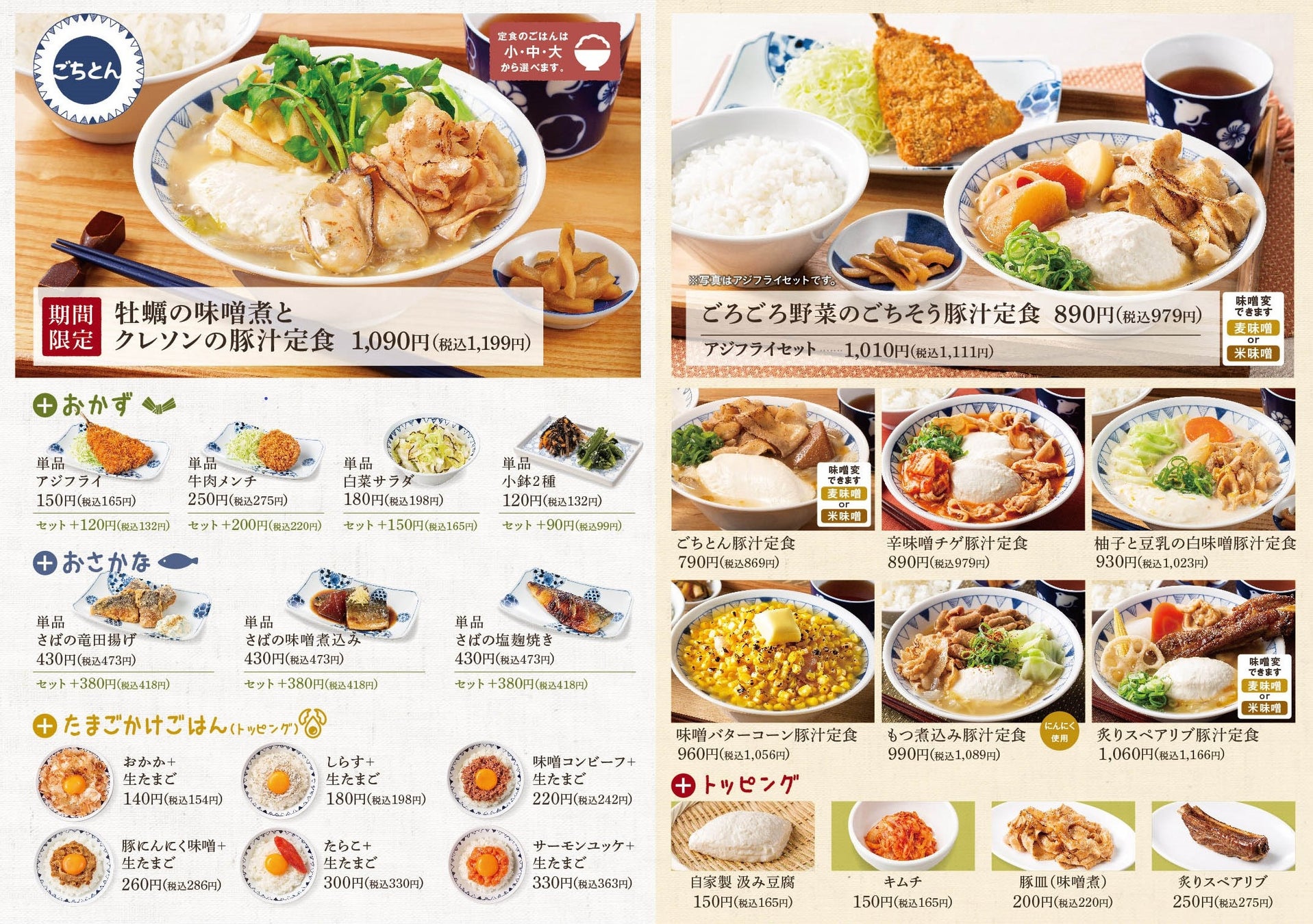 アークランドサービスホールディングス株式会社の子会社、「東京たらこスパゲティ」などを運営するフィルドテーブル株式会社(本社:東京都千代田区/代表:中島 宗則)は、豚汁定食専門店「ごちとん」6店舗にて2024年12月18日(水)より期間限定メニュー「牡蠣の味噌煮とクレソンの豚汁定食」を販売開始いたします。